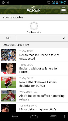 L'application officielle de l'euro 2012 est disponible et est en collaboration avec Orange. Ses fonctionnalitées :